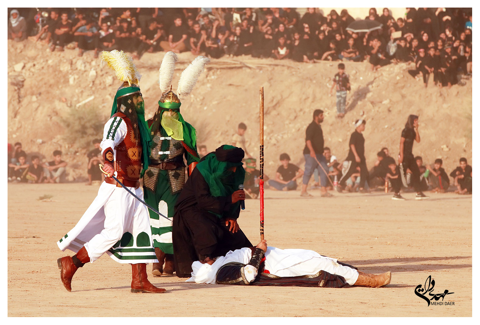 این نمایش آیینی ساعت پنج عصر با دمام زنی آغاز شد و باتوجه به گرمای بیش از حد هوا استقبال بسیار خوبی از آن به عمل آمد.